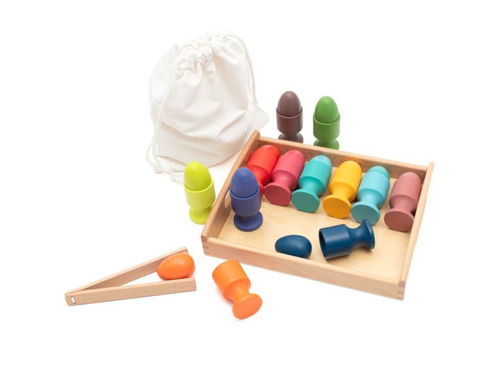 - Podpora motorického rozvoje: Děti mohou vajíčka vkládat do stojánků, používat dřevěné kleště a trénovat koordinaci pohybů.